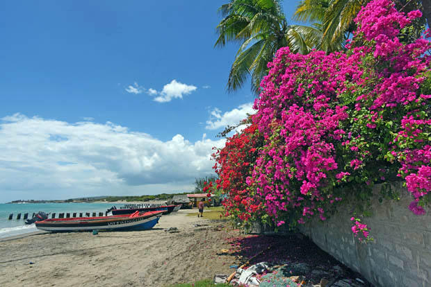 Bougainvillea along the shore at Great Bay – the swim finish.