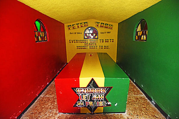 Tosh lies in a crypt with the words: "Everybody want to go to heaven. Nobody want to die" emblazoned on the walls painted in the colors of the Jamaican flag.