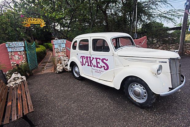 The journey to Jakes (Jamaicans don't bother with apostrophes) begins with a 2 and half hour journey on twisty roads with only inches – no guard rails – between your intrepid driver and a jungle plunge. I was lucky to have Conroy at the helm of our SUV taxi because he grew up in Treasure Beach and knew every single pothole on the road from Montego Bay airport and our destination on Jamaica's southern coast. While perfectly confident in Conroy's driving skills, the weaving and curving brought out a fierce hunger. And Conroy knew the answer – the world famous Border Jerk barbecue where we ate heavenly jerk chicken and were on our merry way. Almost precisely halfway, Conroy stopped at the emotionally moving memorial to reggae legend Peter Tosh, which was tended by two kindly gentlemen in beautiful Rasta garb.