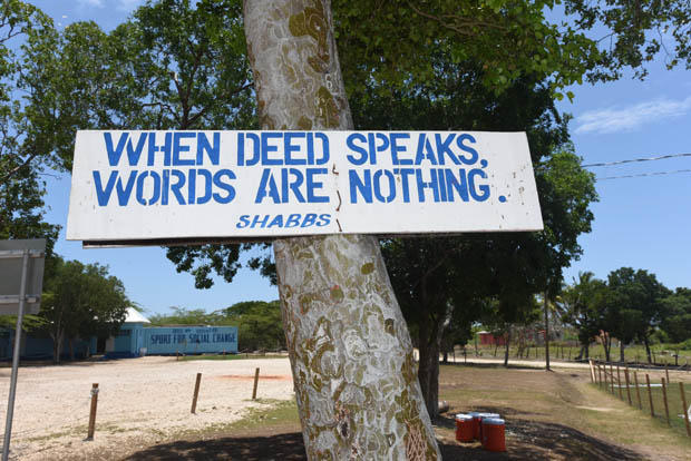 Inspiring words from local philosopher Shabbs at the Treasure Beach sports complex.
