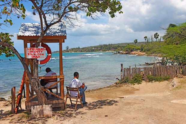 The journey from Montego Bay airport takes 2 and a half hours on a curvy, narrow road with no margin for error. A third of the way stop at Border Jerk for exquisitely barbecued jerk chicken is a must.