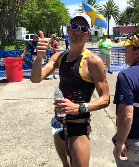 Colin: You need to understand, I don’t train that much right now. I train maybe 1 hour to 1.5 hours maximum a day, and that is all I can fit in. The longest swim workout I have done over the last 2 years is maybe 1,700 yards. I never have the time put in the quality long stuff, and thus bike rides usually are not longer than 2 hours 45 minutes, at least not in over a year. I know I have another level in me to get faster and better, but the most important thing to me is family and balance and stuff like that. The great thing is that I have summer vacation coming up here and our schools let out in about 3 weeks, so I think I will throw down as much training as I can, and then see if I see some immediate gains from that. Maybe that then will cause me to take a year off from work. But I am not going to quit my day job, I like being in education, and mostly I just wanted to see if I could qualify and could get a top 3 in a big race. But I am interested in seeing where I could go.