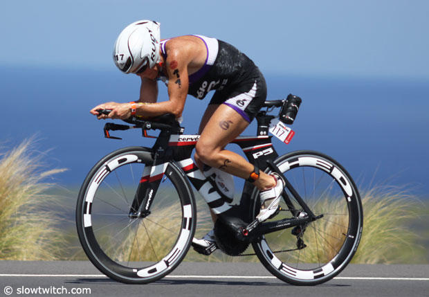 You might wonder what the images embedded here represent. The first two are of Mike Lovato in Kona in 2007 and Rasmus Henning in 2009. These images were pretty representative of the bikes ridden back then in Kona: lots of dual bottle mounts in back. Nothing wrong with these set-ups! I have no information that either of these riders experienced any problems with their bikes. But things are done a little differently now.