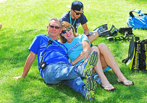 Wildflower race director and wife Betsy enjoy some time on Wildflower's welcoming lawn.