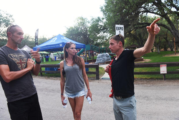 Jesse Thomas poses with some fans at the Jaybird tent.