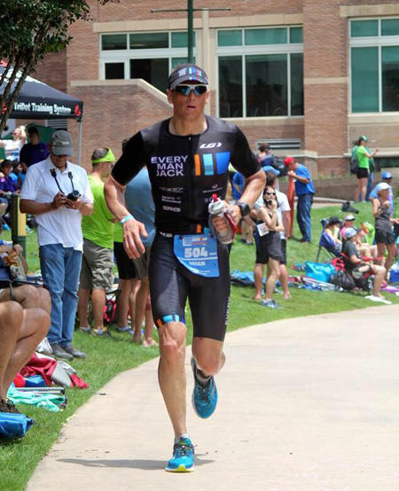 Brian August of Team Every Man Jack crashed hard during Ironman Texas and broke his elbow in the fall half way through the bike segment. The Portland, Oregon resident got back up, finished the bike ride and ran the marathon. He placed in the M45-49 age group and will now go to Kona.