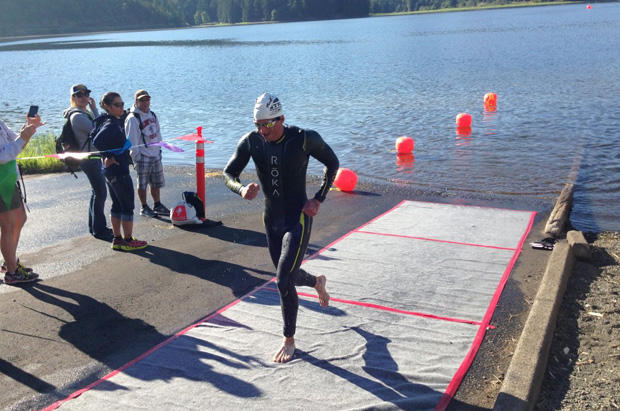 Brian: Yeah, I am usually out in the top 2 or 3 in the swim for Ironman or Half Ironman events, and that is typically where my strength is. Normally for me the way these races go, I start with a good swim and am one of the first people on the bike and then it is basically a 5 ½-hour parade of people coming by, and I rarely pass people on the bike. But this was the first race where only 2 or 3 people came by my during first couple of hours and that was an entirely different race experience for me. Basically being near the front and holding people off. It is due to the work I have been doing with my coach Craig Upton out of Mill Valley and just being able to hold better power on the bike, and have better aerodynamics. I also upgraded my bike to a new Felt IA4 and that made all the difference.