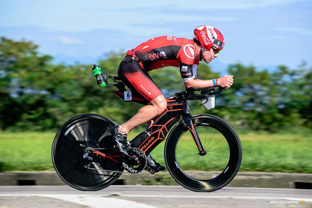 Tyler Butterfield on the way to 5th place, despite a flat tire late during the bike segment.