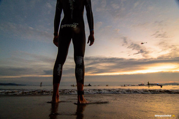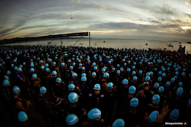 Lined up and ready to start the 2.4 mile swim of the 2015 Ironman Brazil.