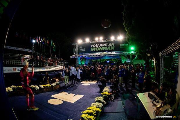 You Are An Ironman. Marinado Brito is greeted by a throng of photographers, volunteers and officials.