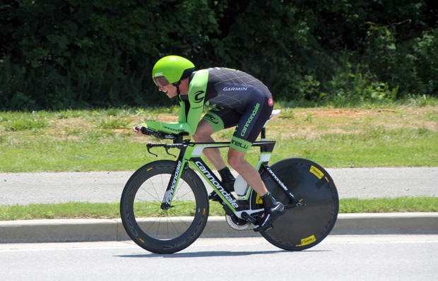 Further, if you’re a pro triathlete sponsored by Cannondale you may not ride this bike. Only the current Slice. Yet former triathlete Andrew Talansky won the 2015 US Pro TT Championships 3 weeks ago on the Slice RS (the higher of the two images above), and Ben King (just above) was second place aboard a Slice RS.