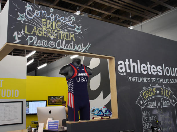 Lagerstrom’s race kit front and center for all Athletes Lounge customers to see announcing his electric win over the weekend.