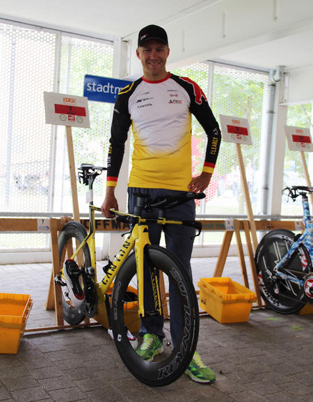The field at the 2015 Challenge Heilbronn is loaded and here are some impressions of the bikes, athletes and happenings during the bike check-in. Especially interesting is Kienle's bike that appears to have SRAM's new electronic group. Surely Jan Frodeno is not the only German who gets to ride that long awaited group.