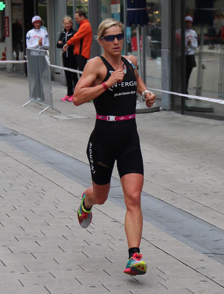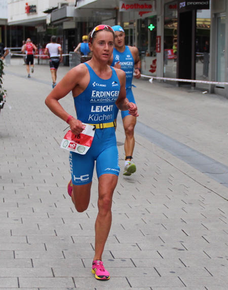 Once off the bike, Laura Philipp ran like a gazelle and slowly gained on race leader Beranek.
