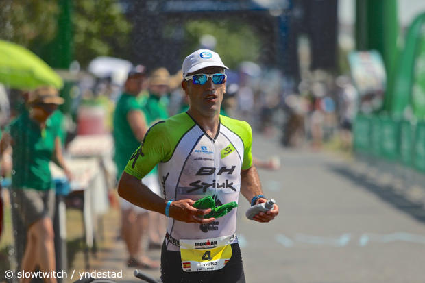 The hot temperatures are evident on the face of the 2014 Ironman World Champion.