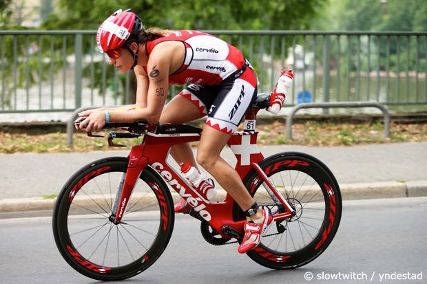 Daniela Ryf had a tough time getting rid of her competitors, but she pulled it off. The gash on her knee is from a tumble in T1.