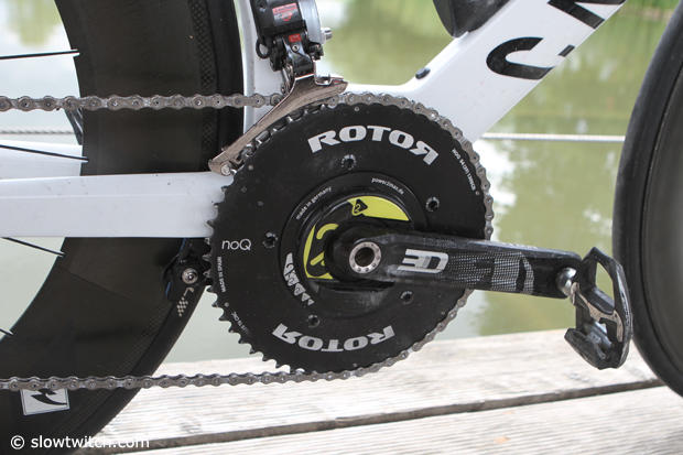 Frommhold rides 175mm Rotor 3D cranks with a Power2Max power meter and a 54 tooth Rotor round ring. Chain is a CeramicSpeed UFO.