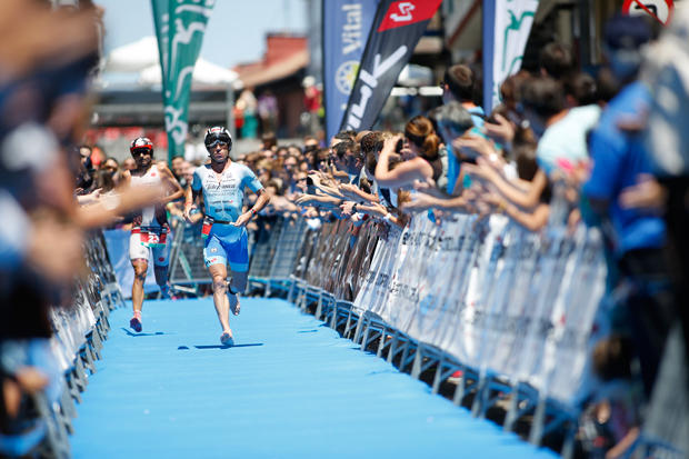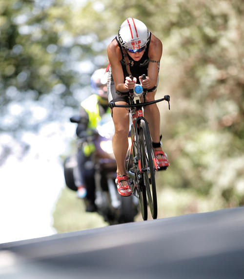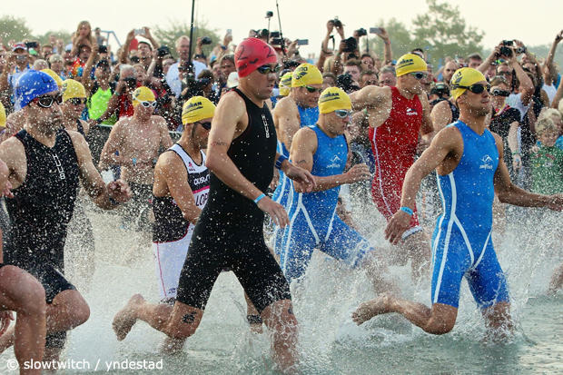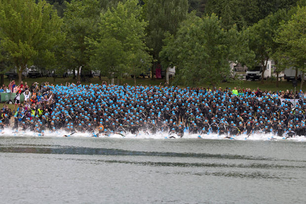 The first athletes are already on the scenic bike course, others are still working on the swim segment.