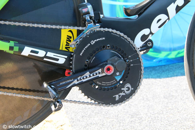 Frederik Van Lierde rode a Rotor QXL 56 tooth big ring with a 41 tooth inner on the 175mm Rotor cranks with power.