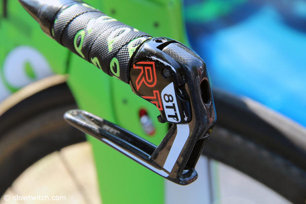 The XLab Gorilla XT BTA cage mounts directly onto the 3T Aduro stem. The purpose of that CompressSport band there is not known to us.