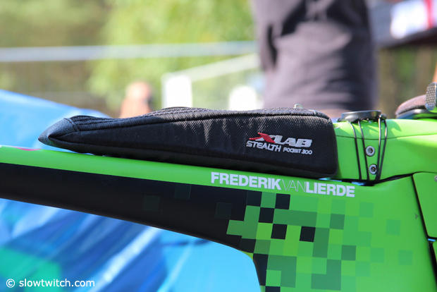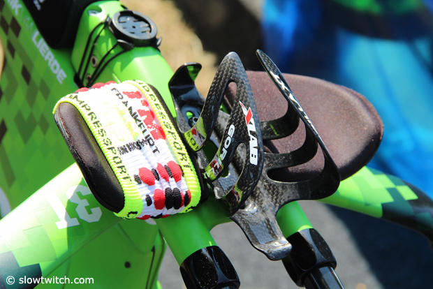 Frederik Van Lierde was one of the first pros to try out the new Prologo TGale saddles. Behind that saddle is an XLab Gorilla XT cage secured by an XLab Delta 400.