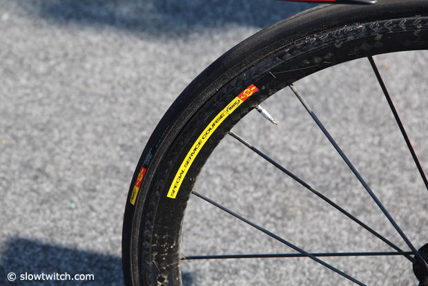 Frederik Van Lierde rode new 25mm Mavic tubular tires.