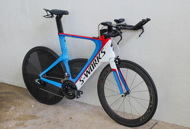 A tall man needs a tall bike. This Specialized S-Works Shiv is a size XL.