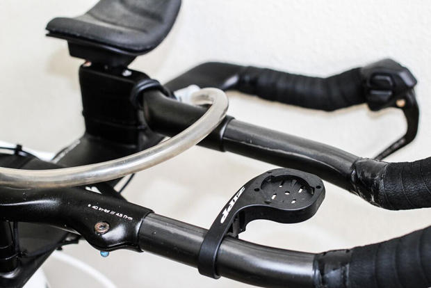 Betten replaced the Magura brakes with Shimano ones, and uses a Zipp Garmin mount on his extensions.