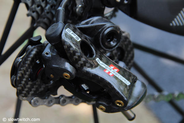 The sharp-looking Campagnolo Super Record EPS rear derailleur.