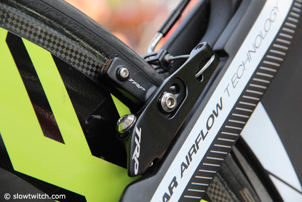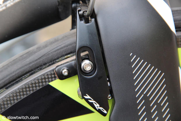 On the back of the bike, the TRP brake sits behind the seatstays.