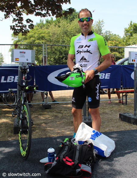 Eneko Llanos was spotted at the Ironman European Championships in Frankfurt aboard a new BH Aero with Campagnolo, Reynolds, XLab, Power2Max, Cobb and TriRig components.