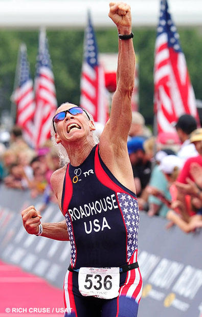 Goss swam to a 1:37 lead on Valentina Carvallo of Chile and 1:39 on fellow U.S. competitor Dede Griesbauer, then gave back a 1:02 lead to Griesbauer, who posted a women’s best 2:22:40 bike split that was 3:16 better than Goss. Goss took back 35 seconds from Griesbauer in transition and another 10 seconds in the first mile of the run, cutting her deficit to 17 seconds. By 3.3 miles into the run, Goss had a 1:50 lead, never to be threatened. After a race-best 1:21:05 run, Goss finished in 4:14:38 with a 9:26 margin over Carvallo (1:23:40 run) and 14:53 over 3rd-place Griesbauer (1:36:25 run).