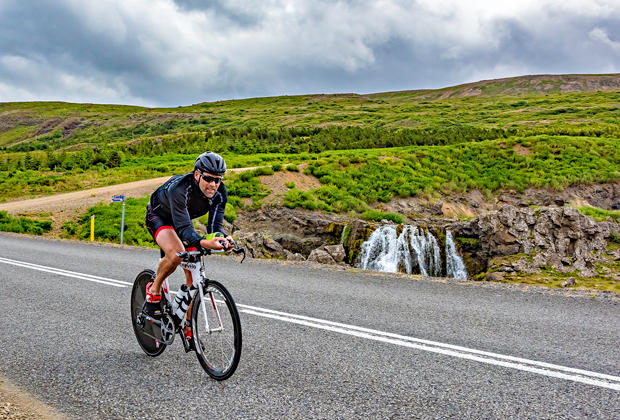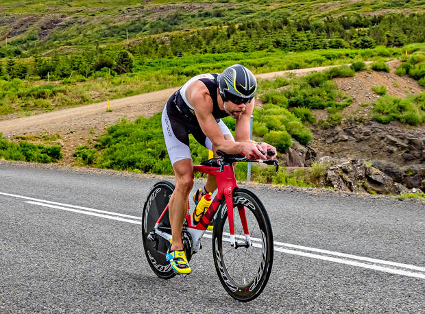 Hordur Gudmundsson on the way to 5th place, with a 2:54:49 bike split.