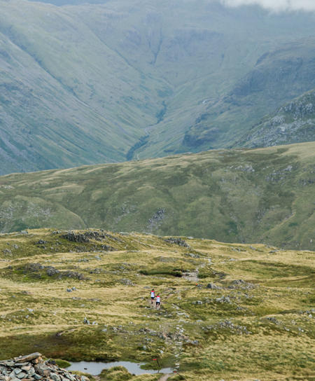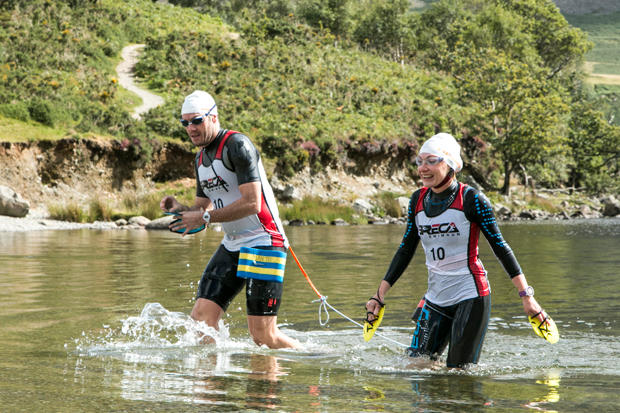 “The course should be well marked. Some farmers might have taken down some of the flags but we should be OK. Read your map cautiously,” indicated race director Ben at the briefing before the competition. Except for one section along the top of the infamous Honister Pass where the sheep had taken to eating the red markings, it was very well marked. The course was a combination of single trails and pure off-road running, with very little road running in the mix. In a part of England where fell running is very popular, the course demanded fearless running skills and the ability to handle steep terrain. A good slice of the running was on stony single footpaths, testing the competitors' off-trail running skills as they crossed rivers and searched for the red flags that guided the teams of two to the next swim section. Throughout 17 successive legs, past icy, crystal-clear waters, the path was a humbling encounter.