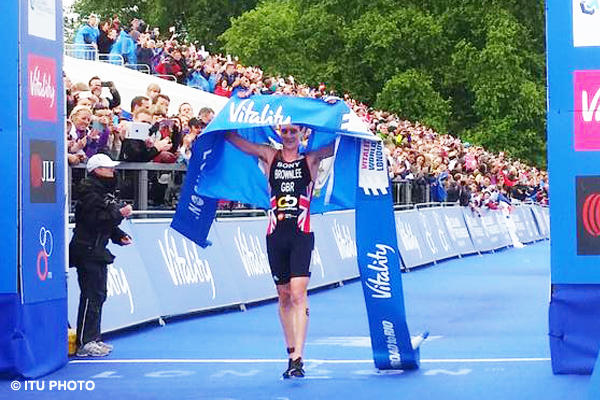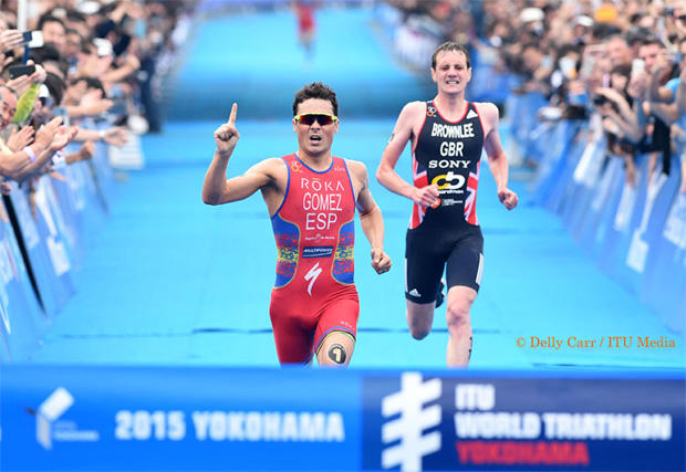 Gomez broke away from Portugal’s Joao Pereira and Australia’s Aaron Royle at the 3 kilometer mark of the run, and closed with a race-best 29:27 10k run to finish in 1:49:33 with a 45 seconds margin over Pereira and 53 seconds over Royle.