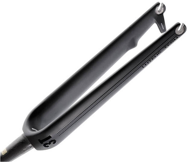But that's not where the real benefit lies. What if you reimagined the whole bike without rim braking? What if you didn't have to contemplate rim brakes when you designed the fork? And the wheel? What if you were able to build a whole new wheel that did not have to withstand the pressure of rim calipers, and with braking surfaces of a specific angle and width? What if the fork didn't need to make a place for these calipers, either in front of or behind the crown? What if the cluster of frame parts – the head tube, down tube, and fork – right at that crown area did not require caliper braking?