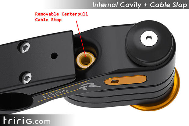 But this leaves a huge market out there for a Profile or FSA to exploit, because we heavily rely on our local bike shops. Yes, FSA has made a center pull brake, direct-mount, but it showed this brake upwards of a year ago and still hasn't brought it to market. The only company to make its superbike mortal with a stem that looks like it's made for the frame is Felt (it's pictured above). But even here, if it were me I'd have drilled a housing stop into that Felt stem, and then stuck a rubber plug in it. A flush plug would have given the stem a finished look, much like the plugs in the various bosses placed on tri bikes' top, seat, and down tubes, which you can access or not. Yes, you can use a TriRig center pull brake with its own add-on housing stop but I like that clean look of a bare cable leading down to the caliper.
