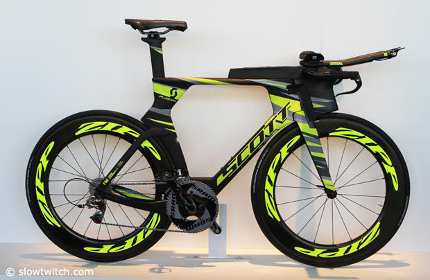 A replica of the custom painted Sebastian Kienle Plasma 5 is featured prominently in the Scott booth.