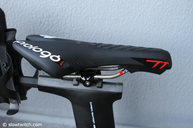 A Prologo TGale saddle sits above the custom over-sized seatpost head.