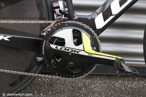 The Look ZED crank system is adjustable from 155mm to 175mm, and a Shimano direct mount brake is sitting below the chainstays.
