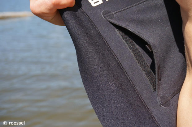 The Amphibia is a strong yet flexible piece of work in itself. All seams inside the arms and legs are already sealed from the bottom to above knees and elbows. It is no longer compulsory to glue the seams of the suit after cutting to avoid loose threads. However, taking some time to find the dimensions that suit you the best does pay off. Leaving arms and legs too long can lead to painful blisters and overheating on the run. But if you cut the suit too short, you lose a lot of flotation and low water temperatures might become a problem. And the hot pants look is not hip at the moment anyway.