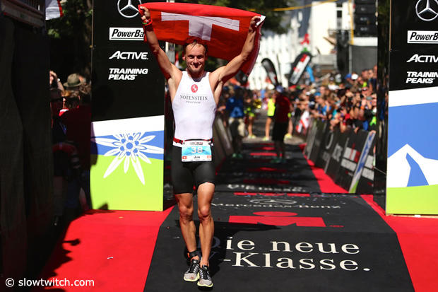 Andi Böcherer was right behind him running in third position, but he fell back to 6th place after having the second best bike split in Zell am See.