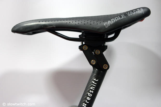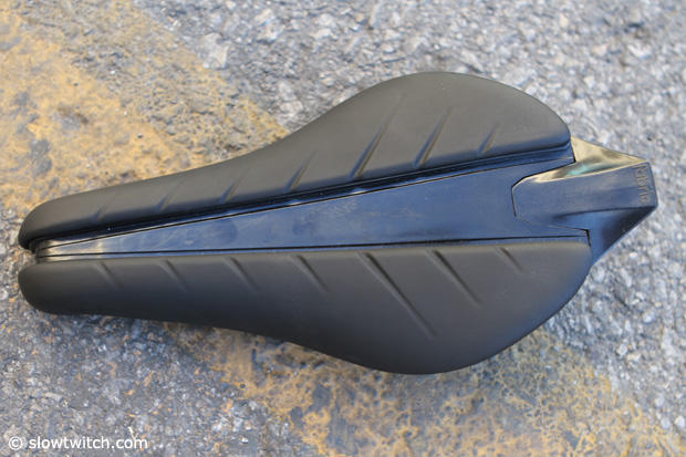 The new Fabric triathlon saddle from above features a deep groove down the center.