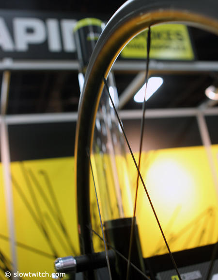 Sapim showed CX-Carbon aero spokes in Las Vegas. They compare at 3 grams to the popular CX-Ray 4.86 gram ones in a 288mm length.