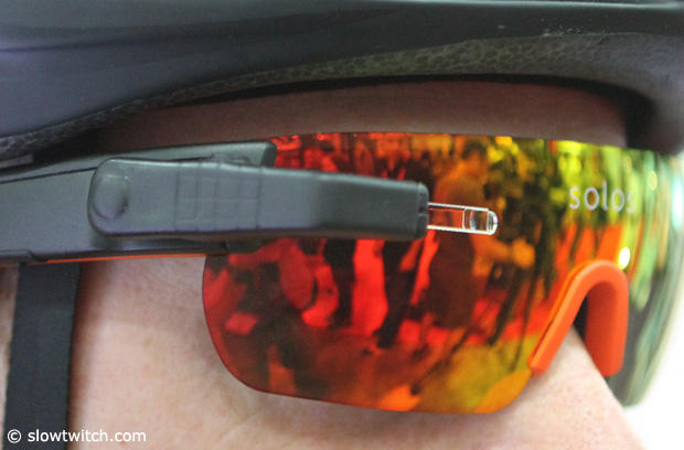 Solos is a heads-up display that was introduced to cyclists at Interbike, but the parent company Kopin is not a new player in this arena. They make most of the fighter pilot helmet displays, and have done so for a long time.