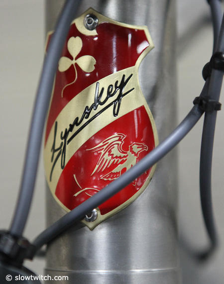 Most of the logos are etched into the frame, but the name of frame master David Lynskey is still applied with a sticker.