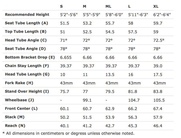 Below is the geometry chart for the TSL 3.1 and also the lower-priced T230.