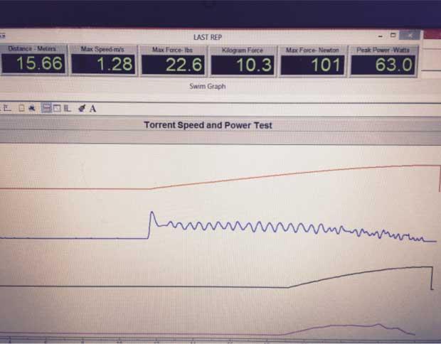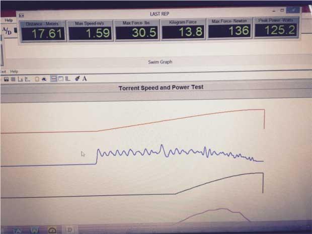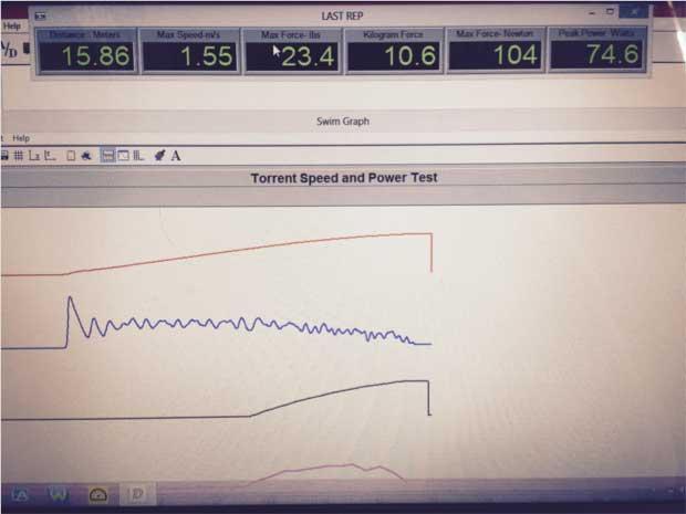 There is a lot of data to analyze, but the most important information consists of two numbers. The first number is the velocity from 5-10m (the second number at the top in meters per second). The second number is the peak power in watts (the last number to the far right). When you plot these numbers out, you can determine how efficient a swimmer is and whether or not stroke mechanics are translating the power generated into faster speeds, or if the mechanics are generating too much drag. Things really get interesting when you get a baseline on an athlete over time, and then start to fine-tune the training. But I'll write more about that later. The video below is the "power rack" in action, with pro triathlete Cody Beals as the guinea pig.