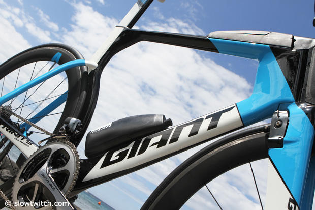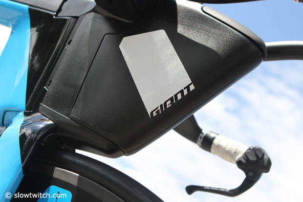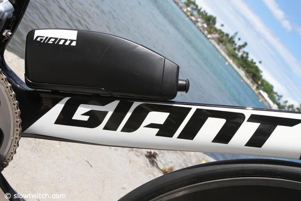The bottle on the down tube is part of the aero storage package on the Giant Trinity Advanced Pro.