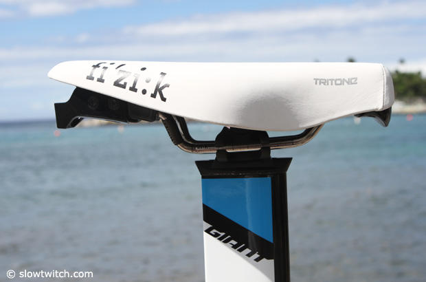Up close with the fizik Tritone saddle and the adjustment range of the post.
